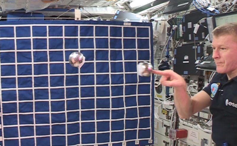 These resources include Tim’s on-orbit demonstrations of elastic and inelastic collisions between objects of different masses filmed from multiple angles. Combined with the Earth based demonstrations of newton’s cradle filmed in high speed video, bouncing balls, and an Earth analogue of Tim’s experiments, in depth analysis of conservation of momentum and kinetic energy can take place.